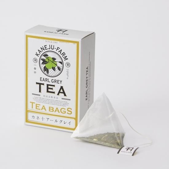 カネ十農園では、カフェインを抑えた一番摘みの茶葉に、ベルガモットから抽出した天然の精油で香りづけ。